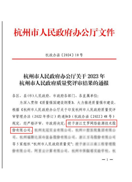 2024:杭州市人民政府质量奖
