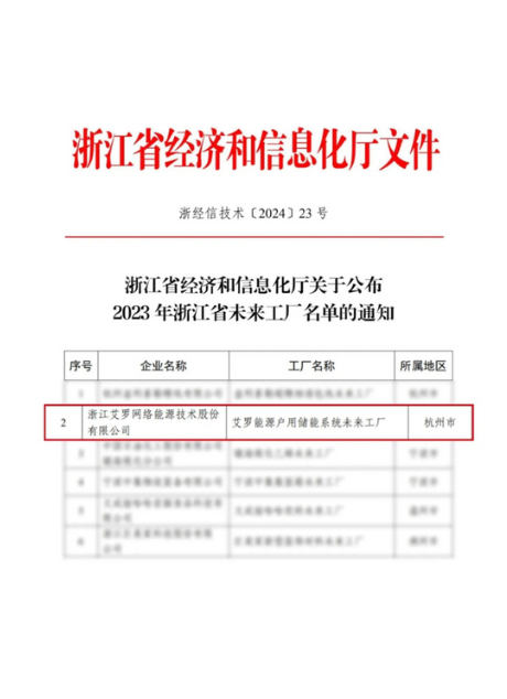 2024:“AG8亚游能源户用储能系统”上榜浙江省未来工厂